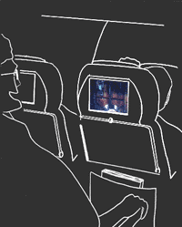Eating his snack, Dave settles back and watches the film. It sets the scene for the conspiracy game. The game experience is carefully fit into the strictly programmed flight schedule, which includes meals, sleep, snacks, and film showings. Based on the content of films shown inflight, game play is interspersed episodically throughout the flight. |